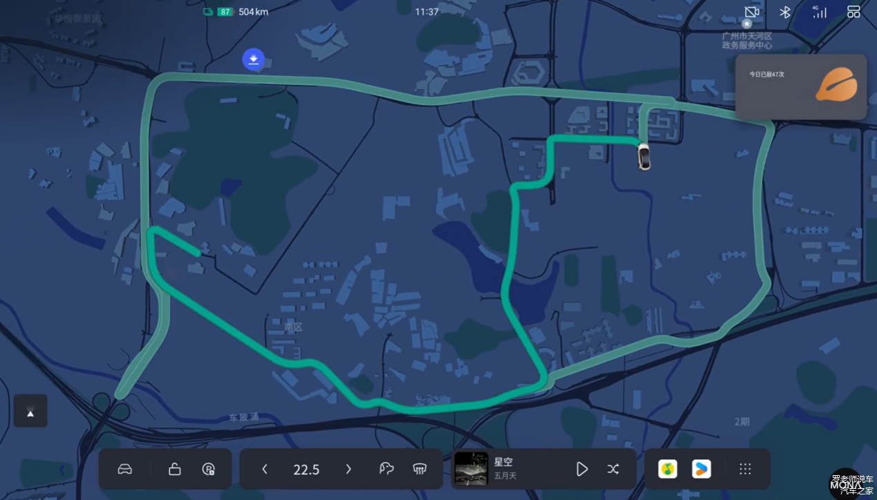 小鹏MONA M03车机系统的导航页面支持全屏显示,当导航设置完成以后,该车机导航不仅提供多条线路选择,更是在线路选择之余提供了每条线路的用时信息。