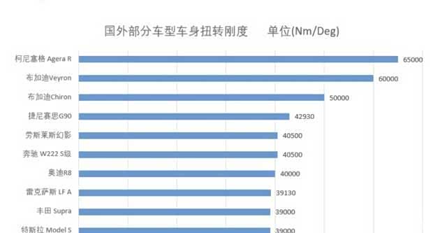 举个例子,衡量车身刚度的指标之一叫做“扭转刚度”。一般来说,扭转刚度越高,车身在转弯时就越不容易发生扭曲,操控性也就越好。过去,只有百万级别的豪车才能达到40000N·m/°的扭转刚度,而现在,很多二十多万的电车,都已经能达到这个水平了。