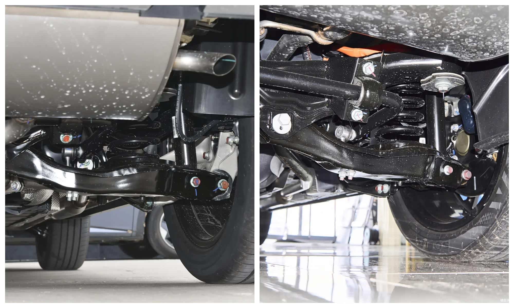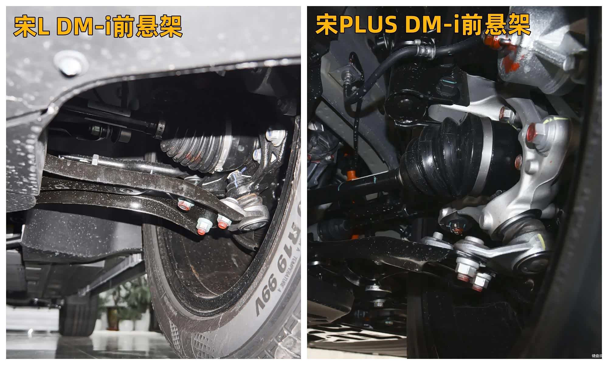 宋PLUS DM虽然在架构上看似要落后一些,但前后悬架都应用了铸铝的羊角和轴承座,可以降低簧下质量,提升转向的灵敏性,并且油箱也升级为高压树脂油箱,这比宋L DM的铁制高压油箱在安全方面强一些。
