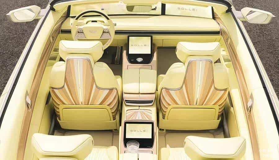 凯迪拉克Sollei的设计灵感都源自太阳和光线,车身颜色是一种名为“马尼拉奶油色”的亮黄色,灵感源自南北极光,如同清晨的第一缕阳光般温暖明亮,让人过目难忘。这种独特的配色最早可以追溯到1957年的凯迪拉克车型,为这台充满未来感的电动车注入了浓厚的历史韵味。