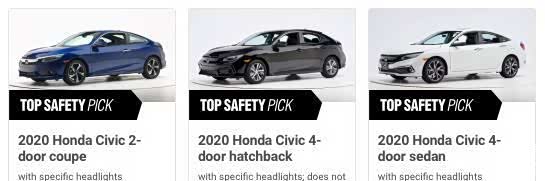 “2020年IIHS顶级安全车评价”今年年初出炉,刚好,本田思域位列榜中,本田思域三款派生车型(Coupe、掀背版和三厢版)均获得“安全”。回想起中保研2018年公布的东风本田碰撞测试成绩,简直差天共地,坐实国产思域偷工减料。