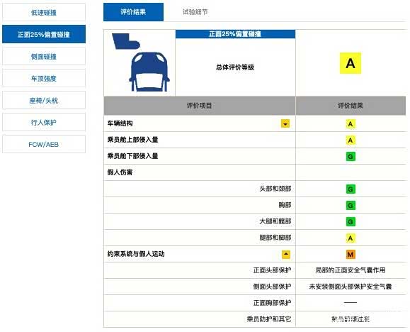 国产思域在中保研碰撞测试当中,车内乘员安全指数只获得“M”(一般)。细分至正面25%偏置碰撞为“A”(良好),而主要失分项则是侧面碰撞,只得“P”(较差)。