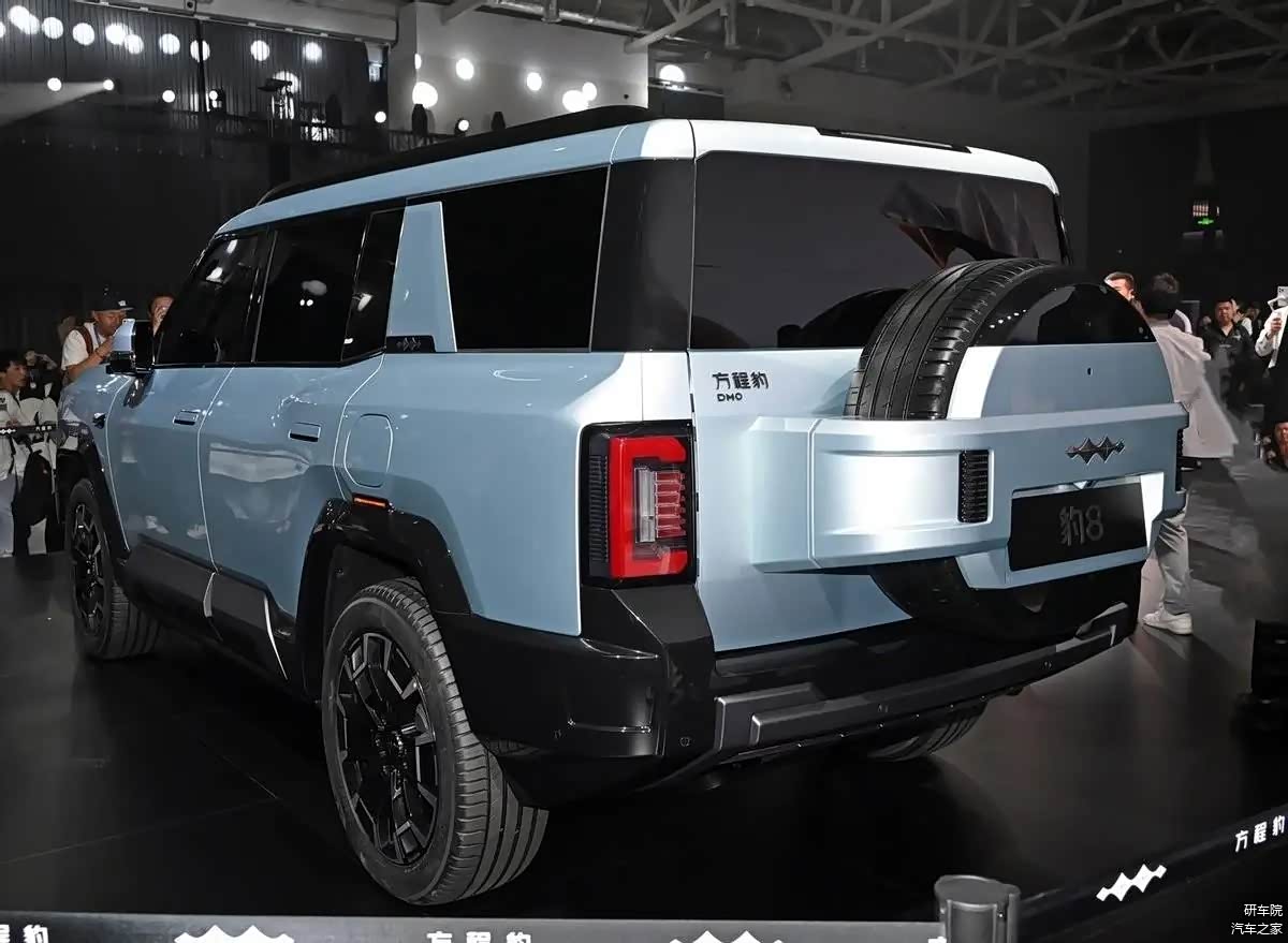 第二款新车是方程豹品牌的第二款车型——豹8。这款中大型SUV计划在今年第三季度上市,预计售价在50万元左右。豹8继承了方程豹的未来星舰设计语言,外形设计十分硬朗,与豹5相比更为立体和大气。动力方面,豹8基于比亚迪DMO超级混动越野平台,搭载2.0T插电式混合动力系统,并配备弗迪磷酸铁锂电池组,纯电续航里程约为125公里。此外,豹8还配备了前后双叉臂独立悬挂系统、“三把锁”越野配置以及云辇-P智能液压车身控制系统,越野性能强劲。
