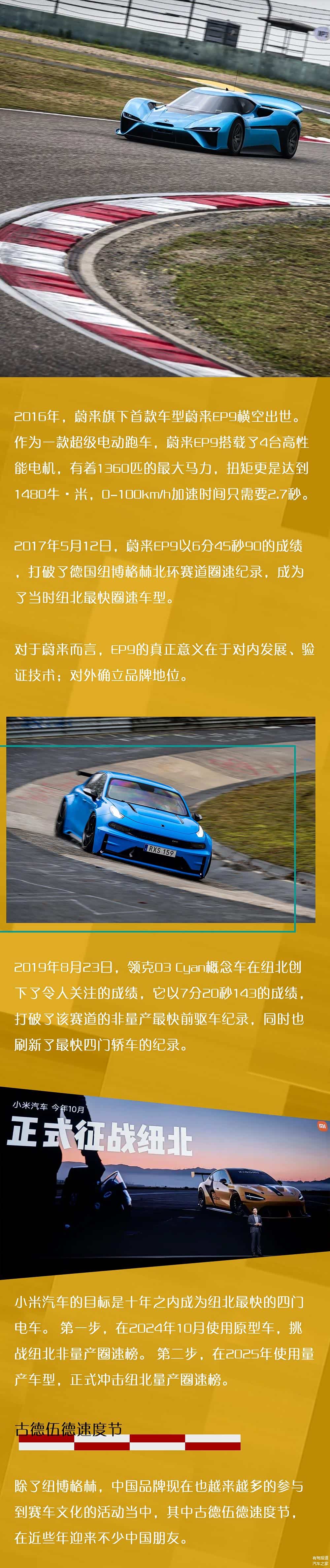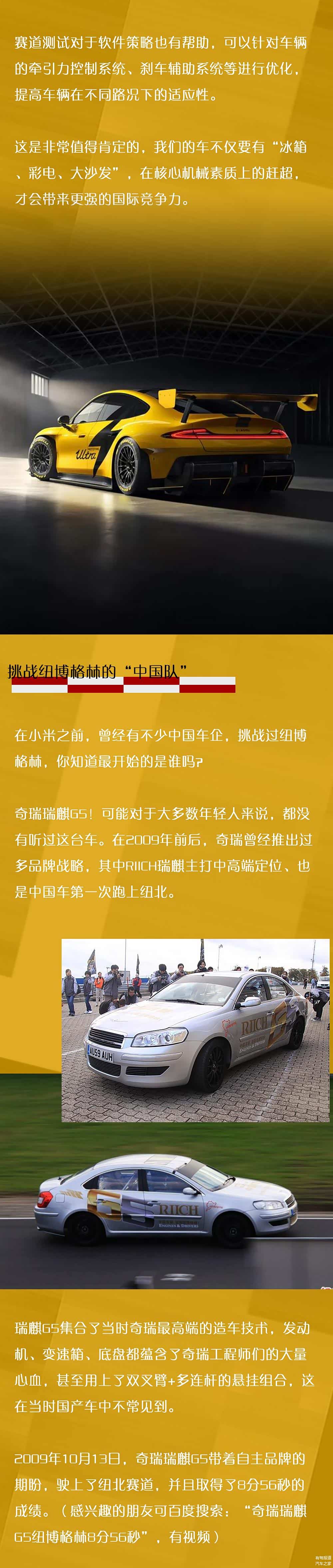重要的是,我们欣喜地看到了小米、比亚迪等中国车企,不断的出现在纽博格林赛道,并且它们不是“玩票”心态,而是以一种研发、验证的精神去发现车辆问题,优化调整。
