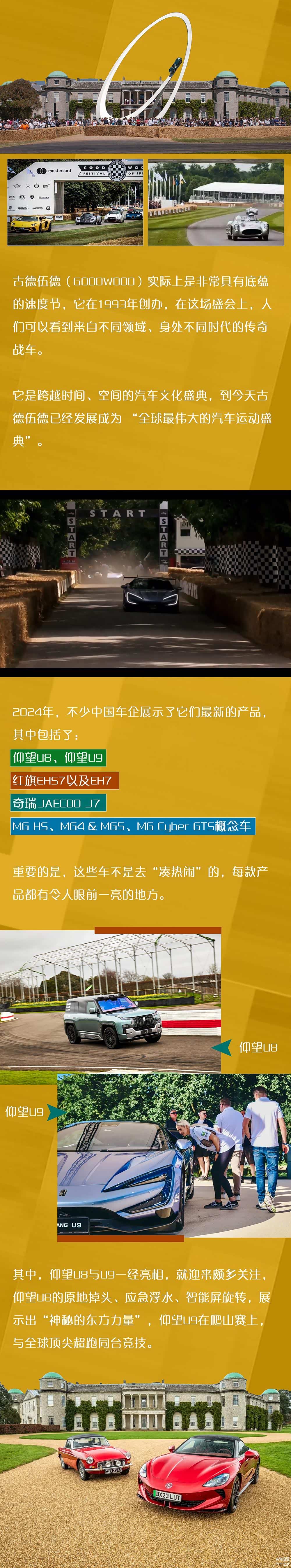 结语:中国车越来越多的走进“汽车文化圣地”是非常好的事情,一方面可以交流学习,一方面展示中国技术。从旁观者到参与者,我们经过多年发展,终于站上了世界舞台。