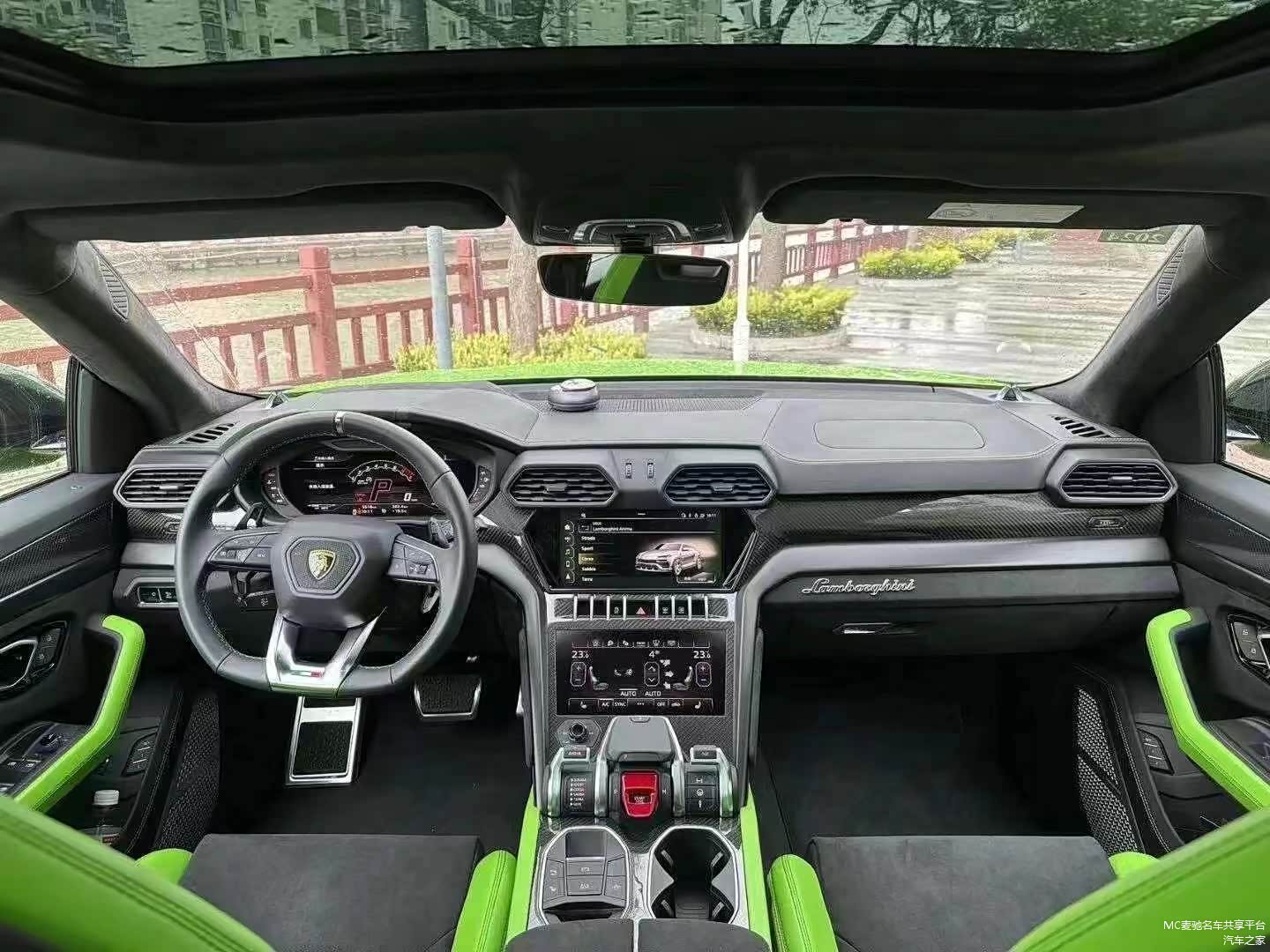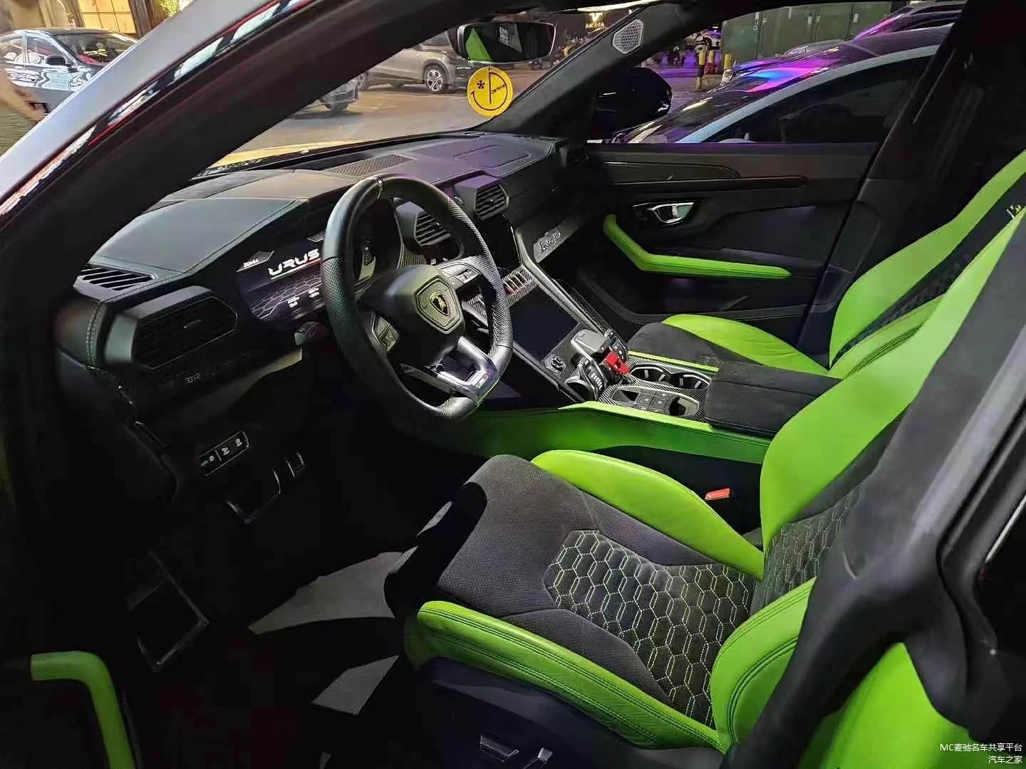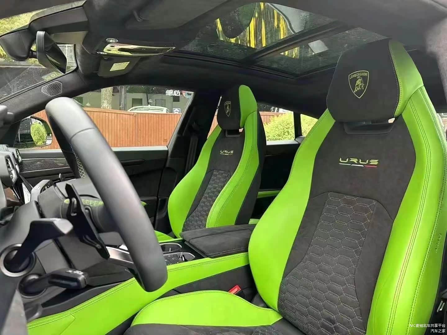 兰博基尼 URUS(图片 | 参数 | 询价) 胶囊版 加版 绿/绿 配置拉满 车辆于2021年7月份上牌,仪表里程2.2万公里 原版原漆 绿本三个名字 满配 音响 缝线 菱形格座椅 翻毛皮内饰 抬头显示 23寸轮毂 碳纤维 碳陶刹车!