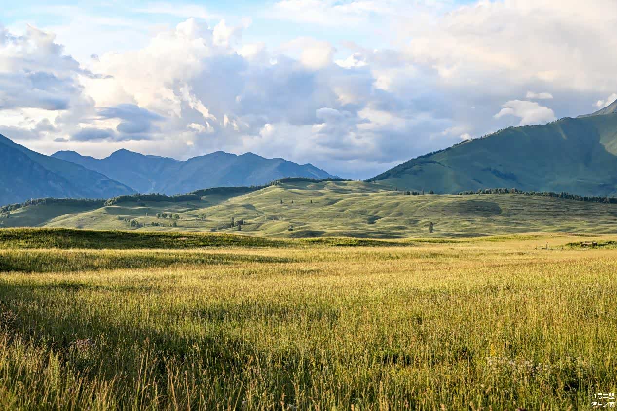 我们沿途穿行在蜿蜒曲折的国道G219,路旁牛羊成群,云水相间,巍峨壮丽的山峰在蓝天白云的映衬下,像一幅流动的山水画卷,向我们铺展开来。这条国道与铁贾公路、省道S232共同组成了喀纳斯大环线,途经山地、森林、草地、湿地等多种自然地貌,150多公里的路程不仅是对驾驶技巧的考验,更是对车辆性能的挑战。