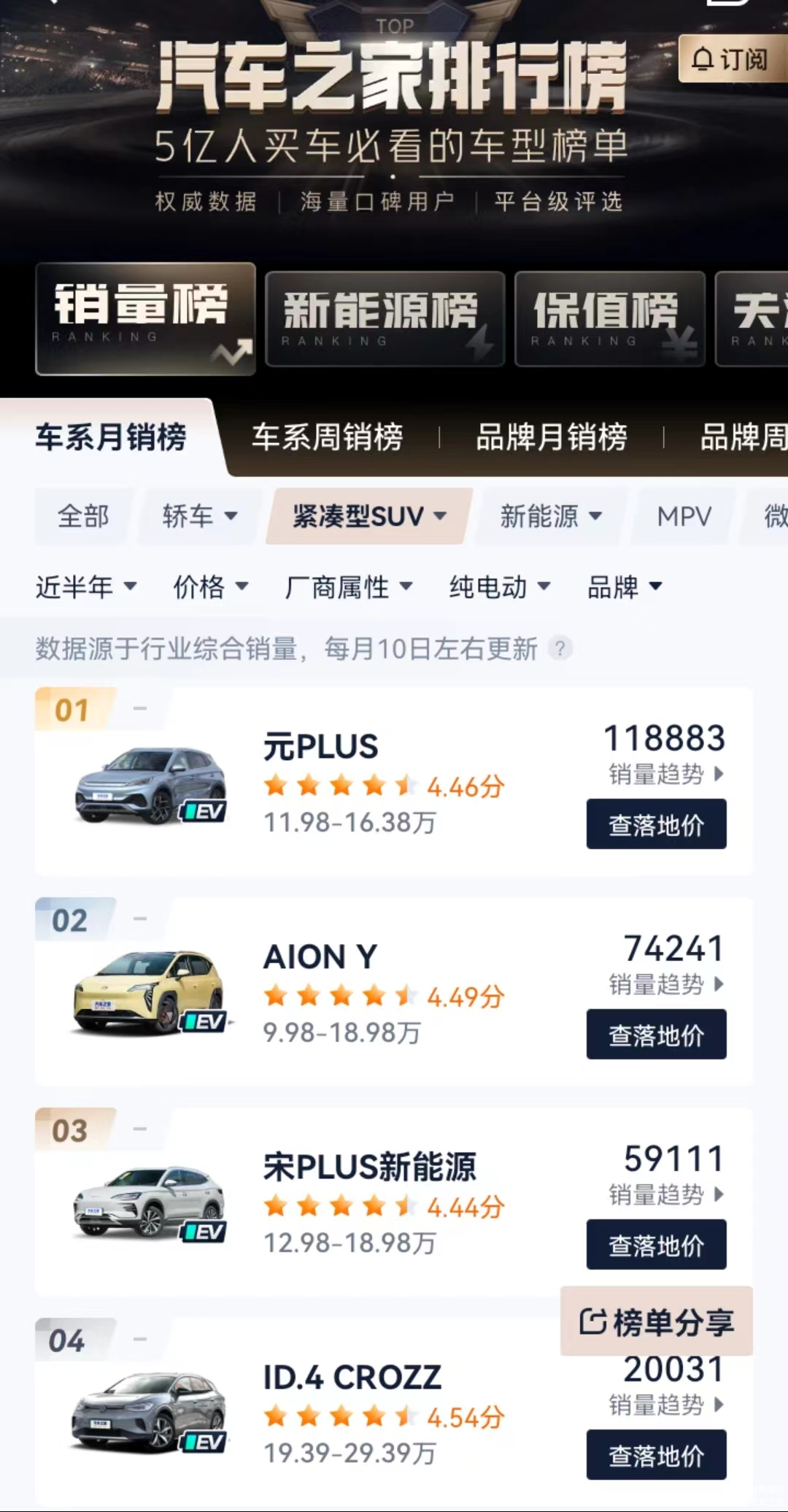 首先,就是来自比亚迪王朝家族给到的“压迫感”,比如近半年的销冠元PLUS,卖出了将近12万辆,还有紧随其后的宋PLUS新能源,月销辆平均也都在万台以上。面对这些卷王级的车型,就看吉利银河E5能否靠着更大的尺寸和续航优势来取胜了。