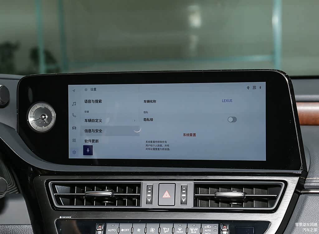 内饰方面,新车整体中控看上去简约前卫,保持了现款车型的设计语言,中控层次感出众,功能区划分也很合理,再加上雷克萨斯车型用料材质和做工细腻严谨,俘获了不少消费者芳心。其配备7英寸液晶仪表和12.3英寸中控屏,屏幕支持苹果CarPlay、百度CarLife、语音识别、车联网以及OTA升级等,同时比起之前ES200卓越版车型增加前排座椅通风、后风挡电动遮阳帘、主驾座椅记忆、方向盘记忆和手机无线充电等功能,并且在智驾系统方面还加入并线盲点监测、倒车侧后方盲点预警带辅助刹车功能(RCTAB)等功能,大大提升用车体验。