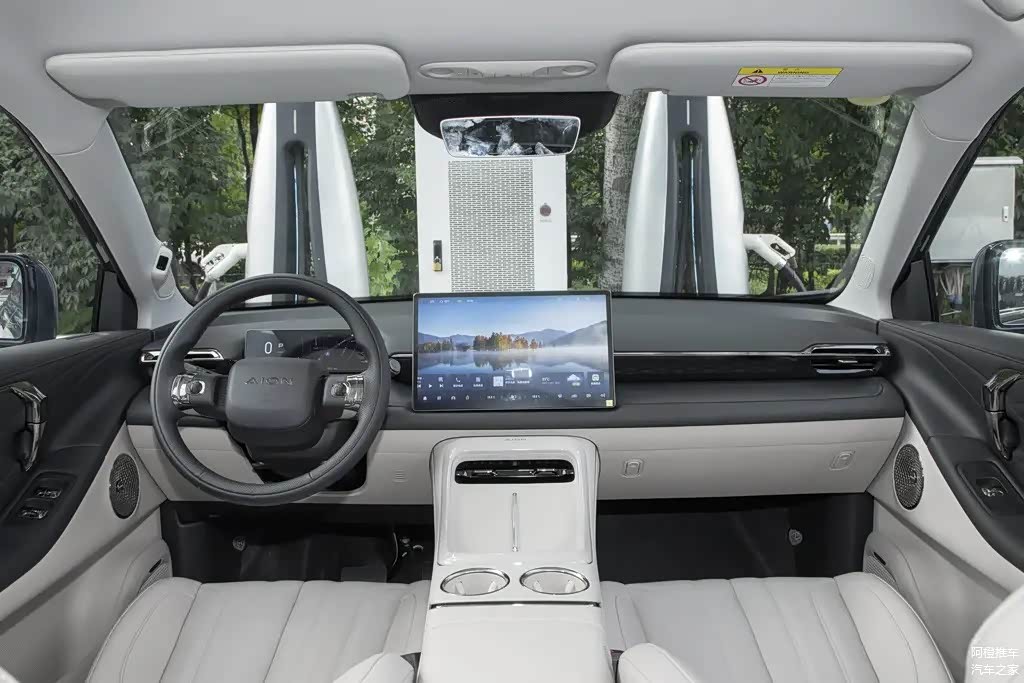 内饰方面,第二代AION V造型与一代车型类似,整体较为简洁,层次感清晰,简化了部分实体按键,多幅式方向盘,仪表采用窄边液晶设计,标配14.6英寸悬浮式中控屏幕,内置ADiGO 5.0车机系统,支持AI语音识别,以及科大讯飞教育资源等应用生态,中央扶手箱带有6.6L智能冷暖空调,最低温度达到零下15摄氏度,制热最高可达50摄氏度,主副驾驶座椅配备8点按摩功能,3种按摩力度和5种按摩模式,进一步提升车内舒适度,配备后排小桌板、比利时Premium音响系统、电动遮阳帘等,配备了电动尾门,后备箱容积为427L,后排座椅放倒情况下容积可达987L