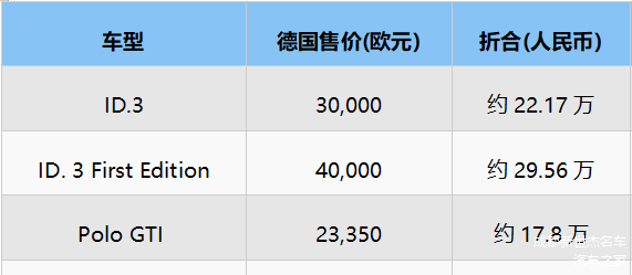 最终实际售价依照各国提供的补助金额不同,会有地区性的差异。不过 大众 仍提供了一个售价指标,电池容量最小的基本款,建议售价在 3 万欧元以下,ID. 3 First Edition 则会低于 4 万欧元,若以汇率计算,折合人民币分别是约23万与 30.6万元。所有 ID. 3 都会用碳平衡的方式运送给每一位车主,大众 甚至尝试连电池与车辆制造都要达到碳排放平衡的目标。大量采用再生能源便是手段之一,若有无法避免的碳排放产生,大众 也会透过后续环境改善计划予以补偿。