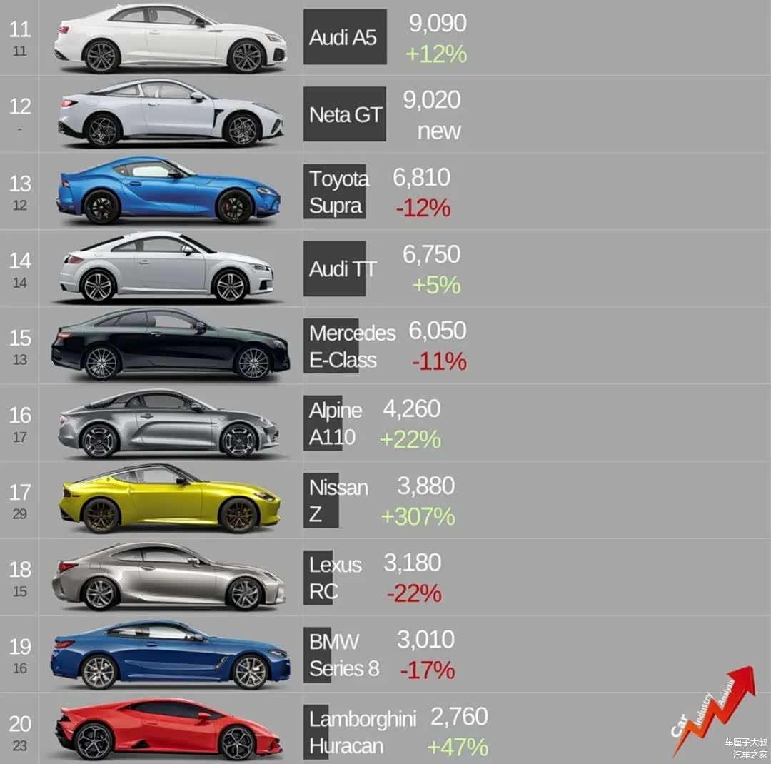 以上便是本次榜单的所有排名,本次哪吒GT的上榜确实出人意料,接下来你觉得还会有中国自主品牌跑车上榜么?