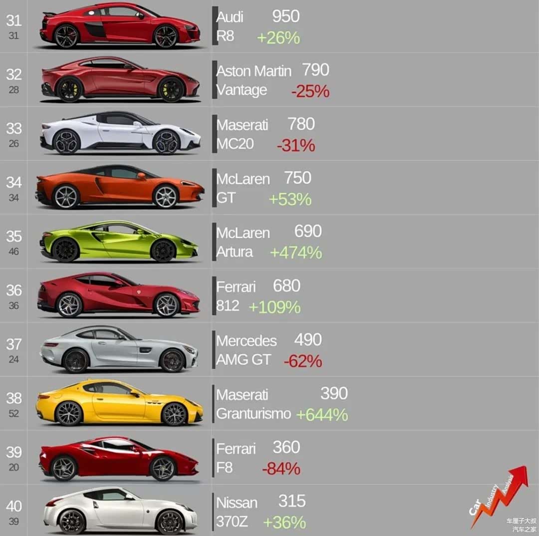 而被大家熟知的一些豪华跑车,例如兰博基尼、法拉利、迈凯伦等,都有着较高的价格,一般人难以购买,所以一直保持着较低的排名,但这并不影响它们在跑车界的地位。