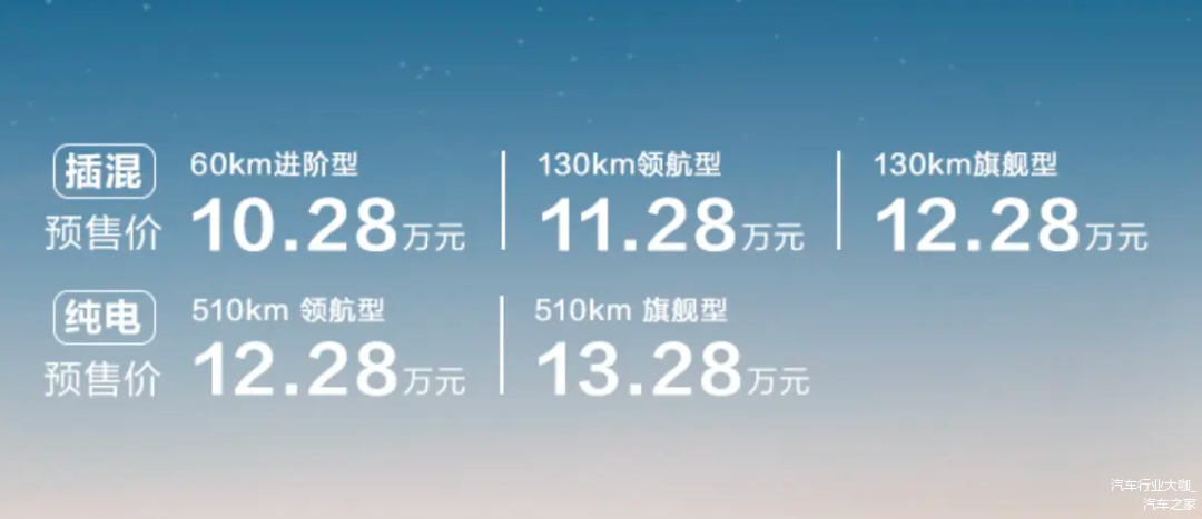 近日,五菱汽车进一步公布五菱星光S预售价格并全面开启预售,纯电版510公里领航型、旗舰型预售价分别为12.28万元、13.28万元;插混版60公里进阶型预售价10.28万元,插混版130公里领航型、旗舰型预售价分别为11.28万元、12.28万元。