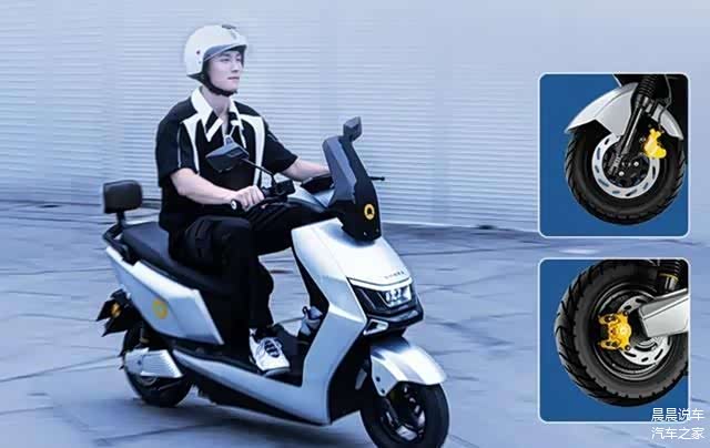 作为一款大型电摩,它的负荷是很大的,尤其是高速行驶时,对于轮胎、车架、减震、刹车都是考验。新日剑齿虎完全按照摩托车标准来设计打造,车架为材质加粗无缝钢管,机器人自动弯管焊接打造,精密度和承载力都很强,减震使用的是五档可调液压减震,轮胎则是90/90-10全地形真空胎。