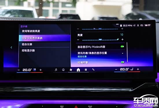 HUD抬头数字显示的清晰度和内容丰富程度都可圈可点,全液晶仪表盘内可以选择平视显示的样式。此外,在中控屏的“显示器”界面内,还可以对全彩平视显示系统进行多项细致的调节。