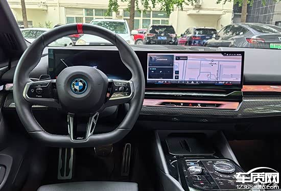 2024款宝马i5车内配备大尺寸双联屏,包含12.3英寸全液晶仪表以及14.9英寸中控屏幕。屏幕对黑边的控制十分得当,显示效果清晰细腻,整体观感相当出色。虽然宝马官方并未公布处理器型号和内存参数,但是系统流畅性确实无需多言,实测过程中并未出现明显的卡顿情况。全液晶仪表支持多种显示内容调节,观感及实用性表现均令人满意。
