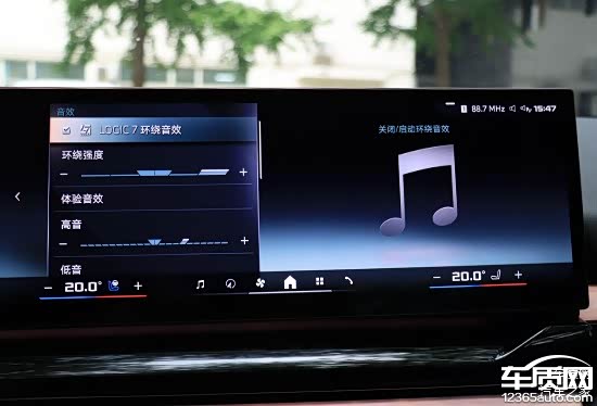 评测车配备Bowers & Wilkins宝华韦健音响系统,拥有18个扬声器。除了LOGIC 7环绕音效,还可以针对均衡器进行详细的手动设置。根据实际体验来看,这套音响系统的综合素质确实相当出色,沉浸感极佳,应该能够满足绝大部分用户的使用需求。