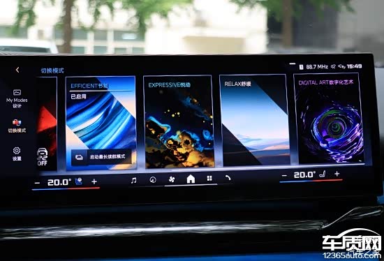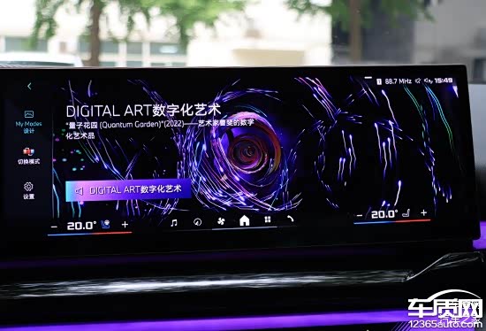 车机系统内置“My Modes”选项,可以根据驾驶者的喜好提供独特、全方位、个性化的沉浸式感官体验,包括悦动以及舒缓等多种模式。其中,DIGITAL ART数字化艺术内置“量子花园(Quantum Garden)”,是艺术家曹斐的数字化艺术品,选择开启后,车内的环境氛围灯也会进行联动,体验十分独特。