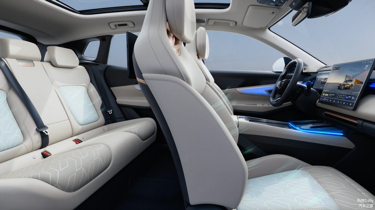 舒享配置进阶中,71%的车内得房率,浅拥式Nappa高级皮质座椅,目之所及和整体的舒享触感都很赞,尤其是前后四座均支持配备通风、按摩和加热功能非常关键,每位乘客都照顾得很周到,另附表现中哈曼卡顿23扬音协同WANOS全景声APP的高品质音源,每次听都惊喜。