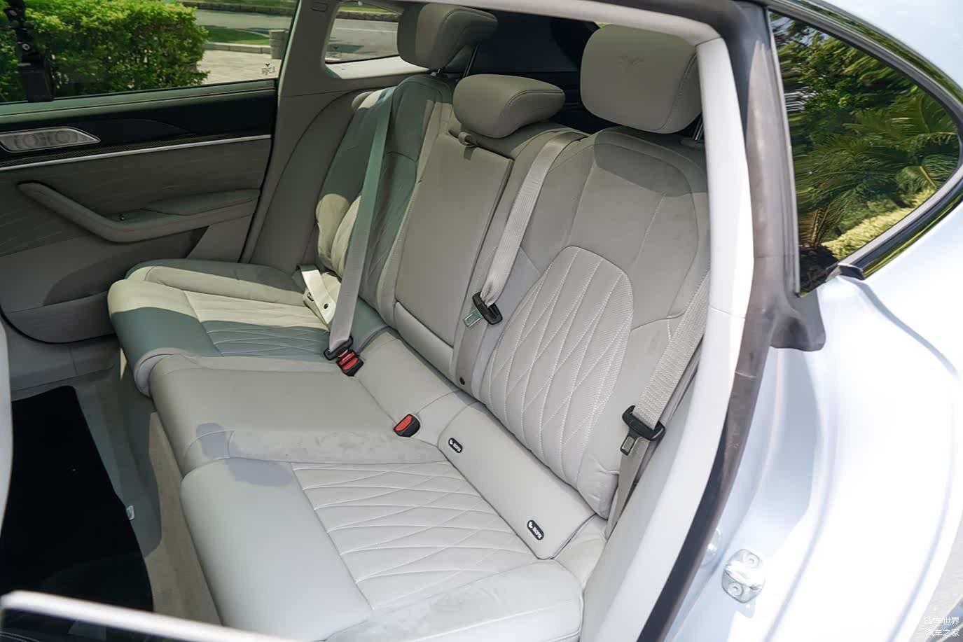 后排的空间表现相当出色,毕竟中大型车的定位摆在这里,坐垫的长度和上翘角度都能很好的支撑大腿,靠背也升级了117°和122°两档调节。实际体验下来,头部空间确实相比哪吒S轿跑车型有提升,但车顶采用不带遮阳帘的全景天幕,虽然车顶玻璃已经拥有双银+隔热PVB+LOW-E镀膜,但隔热效果使用没有物理遮阳帘好。