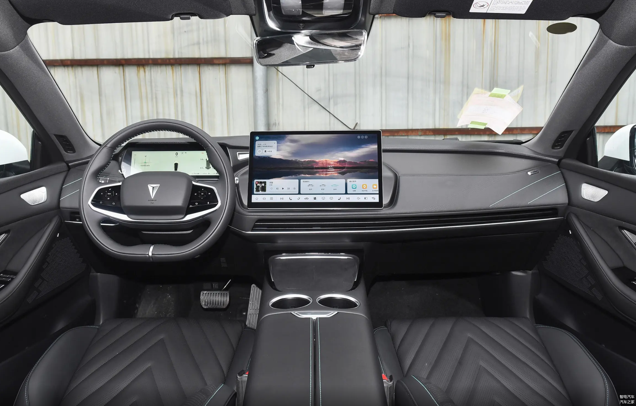 eπ007搭载8.8英寸的液晶仪表屏和15.6英寸的中控屏,车内的大部分功能都集成在这两块屏幕之内,像车载导航、OTA升级、情绪识别、多区语音识别、连续性语音识别、手势控制等功能在eπ007上面都实现了标配。