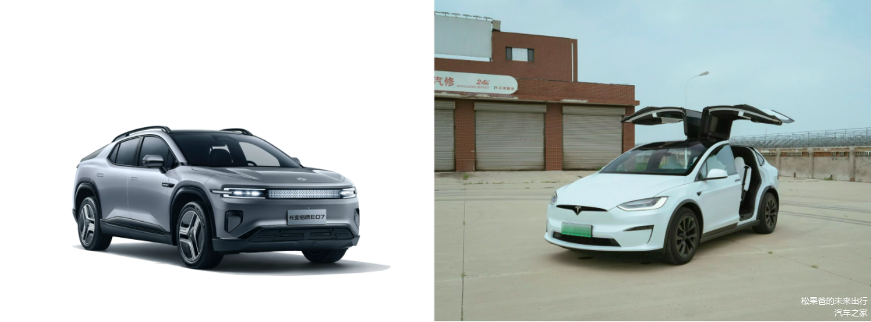 自今年4月亮相北京车展以来,长安启源E07的人气始终居高不下,不仅吸引了雷军等大佬围观,更有长安汽车总裁王俊坐镇微博(微博ID:长安汽车俊哥),与大家随时分享它的领先科技。启源E07拥有3120毫米超长轴距,超出ModelX双电机全轮驱动版整整155毫米,宽敞的内部空间和ModelX所差无几。车头下方的智能电动前格栅,带来了SUV产品中数一数二的风阻系数0.237Cd,带来更低能耗,四驱版百公里加速仅为5.3s,操控性极强。前双叉臂+后H臂全铝合金独立悬架,搭载CDC+空气弹簧,涉水高度可达600mm,挑战各种复杂路况游刃有余,而ModelX的离地间隙为137mm至211mm,穿越溪流、浅河时,只能绕路或低速慢行。全家出游时,启源E07空气悬架主动迎宾还可降下,让老人、小孩上车更便利。如此拉风的配置,赋予启源E07和ModelX切磋竞技的底气。