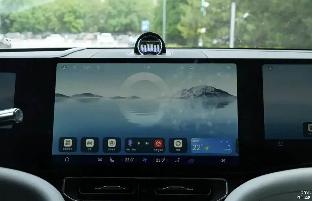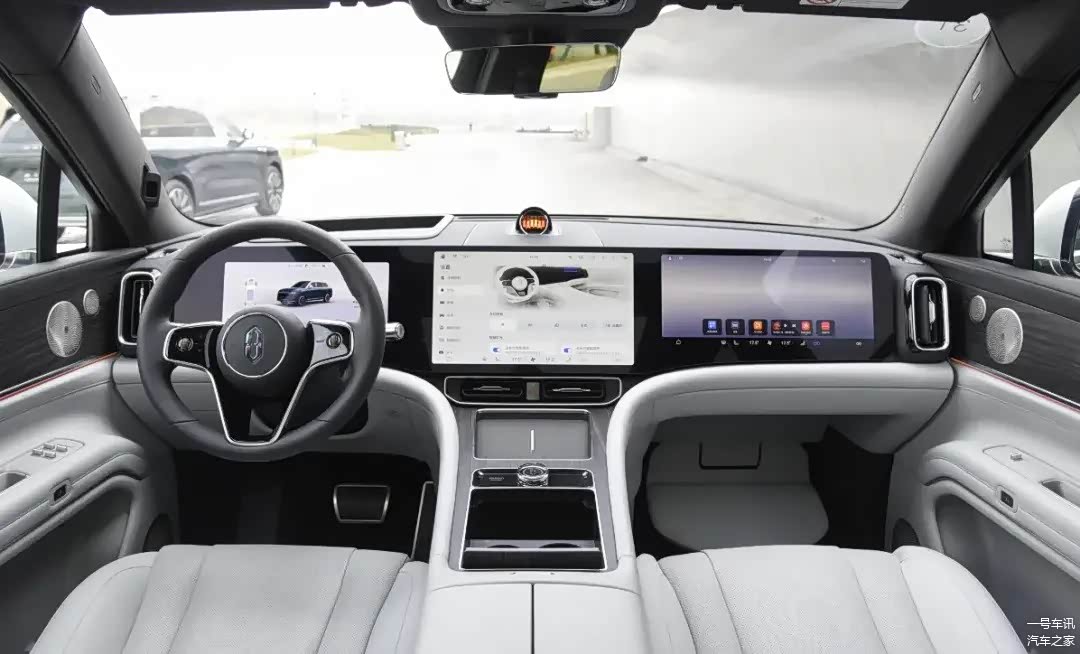 在内饰设计上,问界M9选用的是双环抱式的座舱布局,而其中控区域也展现了三屏的设计。这些屏幕包括12.3英寸的液晶仪表盘、15.6英寸的中控屏以及16英寸的副驾驶娱乐屏幕。此外,问界M9后排还配备了一个庞大的激光投影机,确保所有乘客都可以享受到卓越的乘车体验。