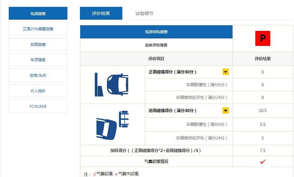 凌派在低速结构碰撞中获得了P较差的成绩,其正面碰撞得分6分,车辆耐撞性满分,其耐撞性虽然很强,但却没有什么维修经济性,车辆维修经济性只获得了0分。而在追尾碰撞中,凌派的耐撞性同样比较高,但车辆维修经济性一如既往地低,虽然比正面的维修经济性强了一些,但整体表现还是一般。另外,凌派在低速结构碰撞中,气囊是起爆了的,但即便是如此,其低速结构碰撞成绩依旧不尽人意。