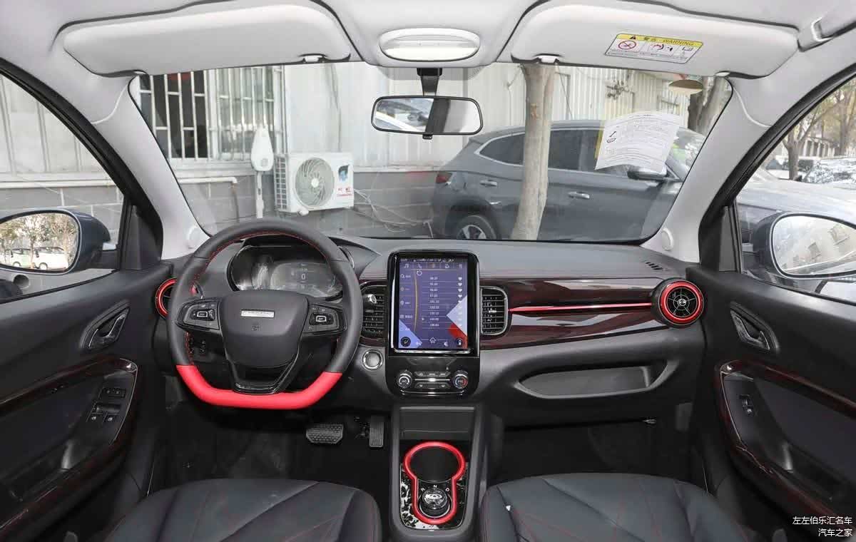 内饰设计方面,小蚂蚁在中控上是清晰的对称结构,两端空调出风口为炮筒样式对称,而中央触控屏则为纵置。同时,方向盘为平底三辐式处理,覆盖了撞色皮革,而带有前杯架的换挡机构则为电子旋钮设计。