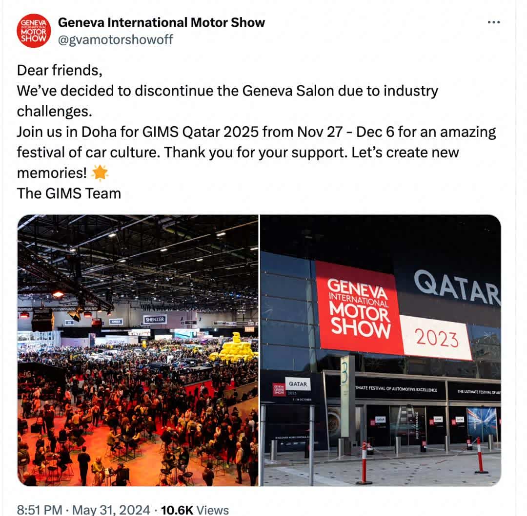 近日日内瓦车展官方宣称,由于“持续的行业竞争压力”,原计划2025年2月17日开幕的日内瓦车展将正式取消,不再举办。
