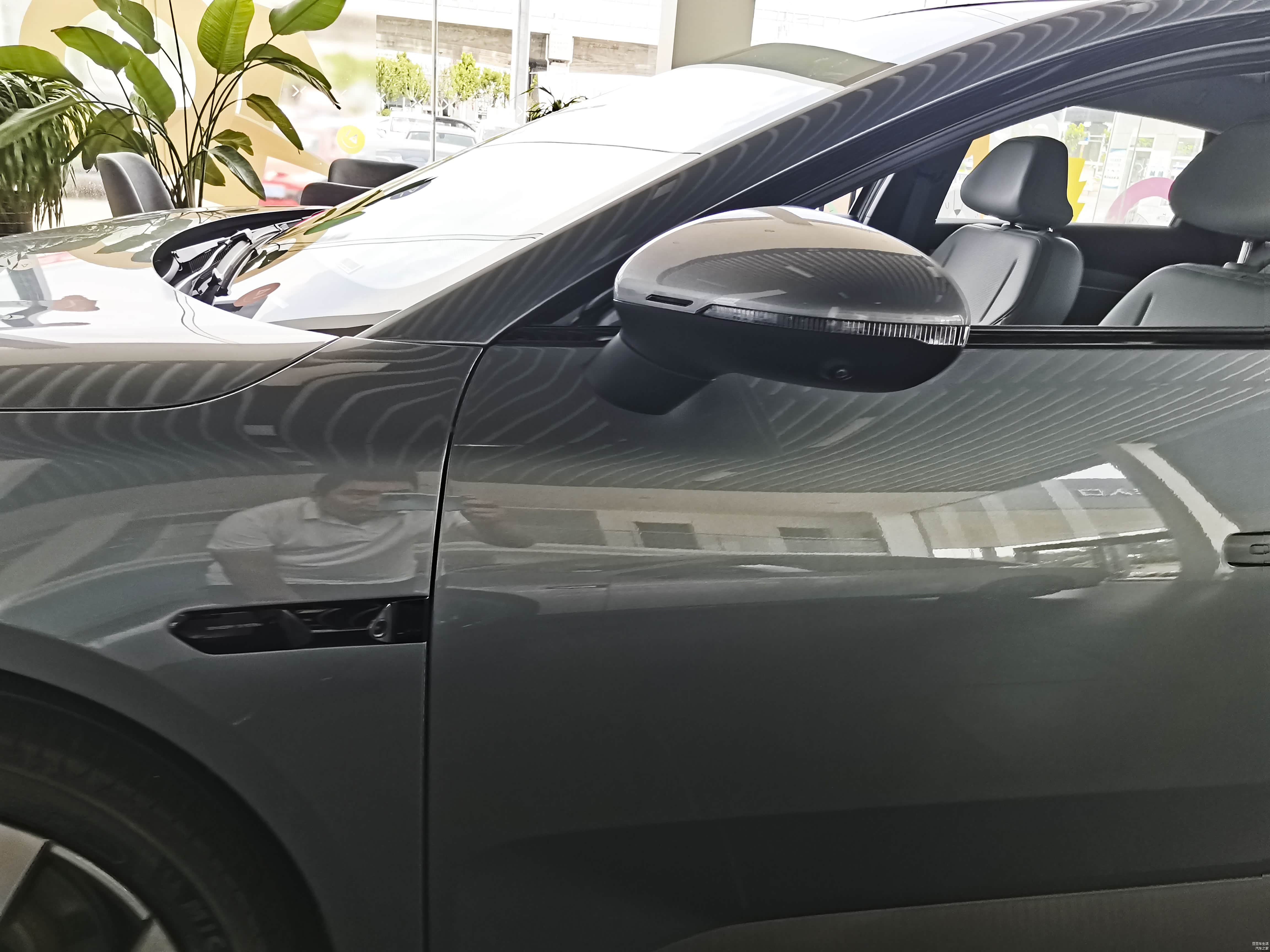 牵连设计的很有特色,特别是车牌照下方。大灯也设计的很有辨识度。在看车的时候我特地围着这个车看了很久,我发现这个车车头、车尾、车侧、后视镜等位置配备了不少探头,前后还搭载了倒车雷达等,看来这个车的智能化程度很高。