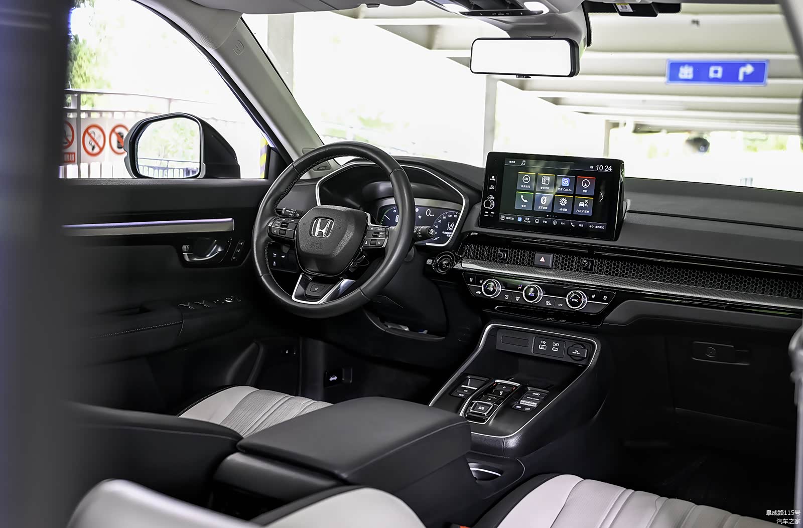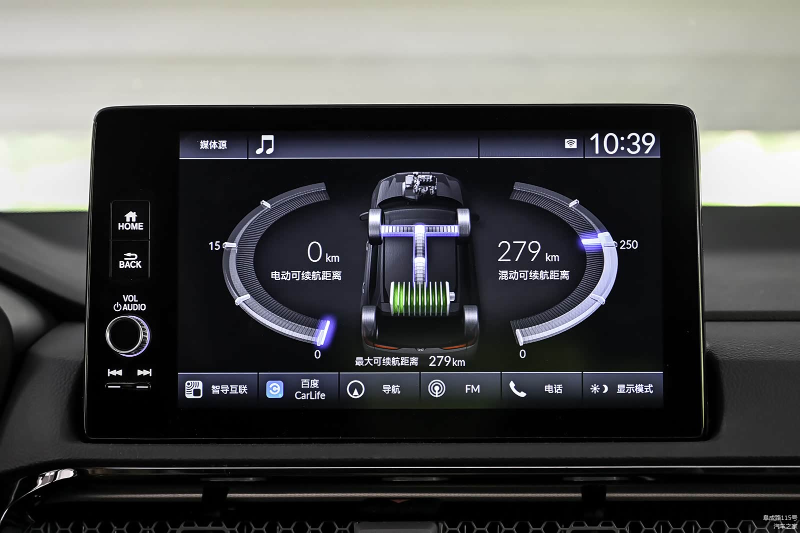 皓影e:PHEV的内饰座舱以实用为主,10.1英寸中控屏内置Honda CONNECT智导互联系统,百度地图、酷我音乐、在线电台、在线天气 它都有。此外,还能呈现功率流视图。