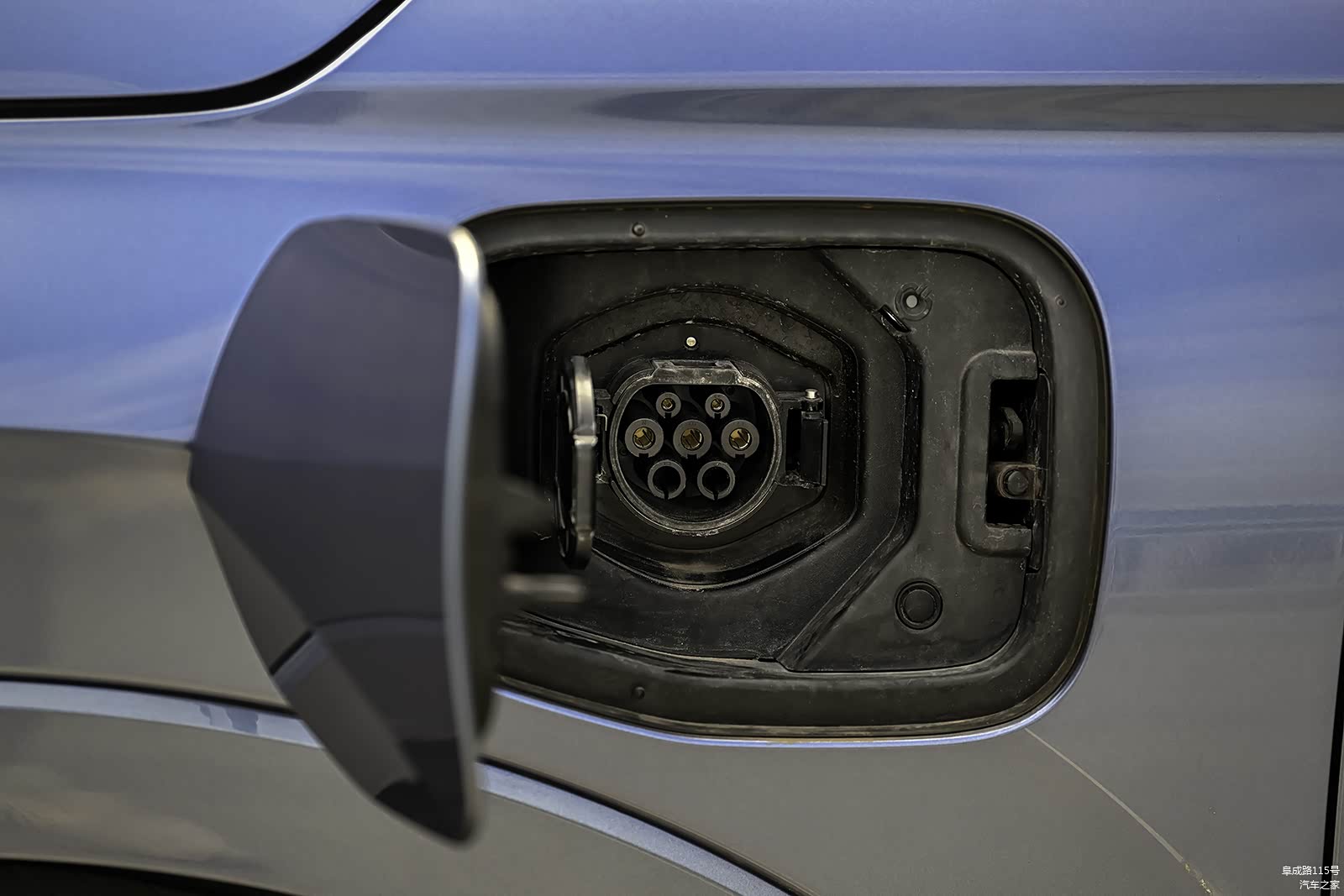 交流充电口位于左前翼子板处,慢充充满需要2.5小时。4716mm车长,2701mm轴距,在紧凑型SUV中属于中上游水平。