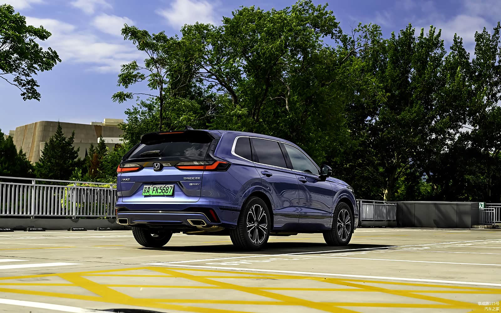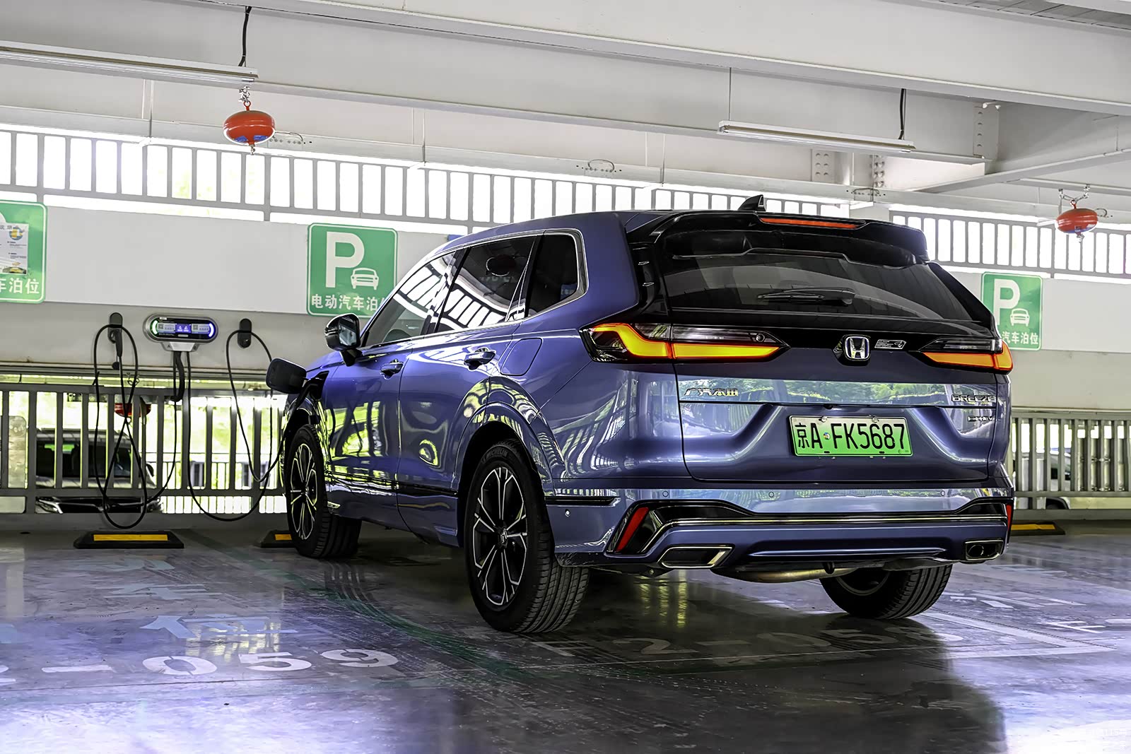 蓝色的本田车标和e:HEV混动版一样,不过e:PHEV前杠上的横梁却是与车身同色的设计。e:HEV混动和1.5T纯燃油版为黑色烤漆饰条。