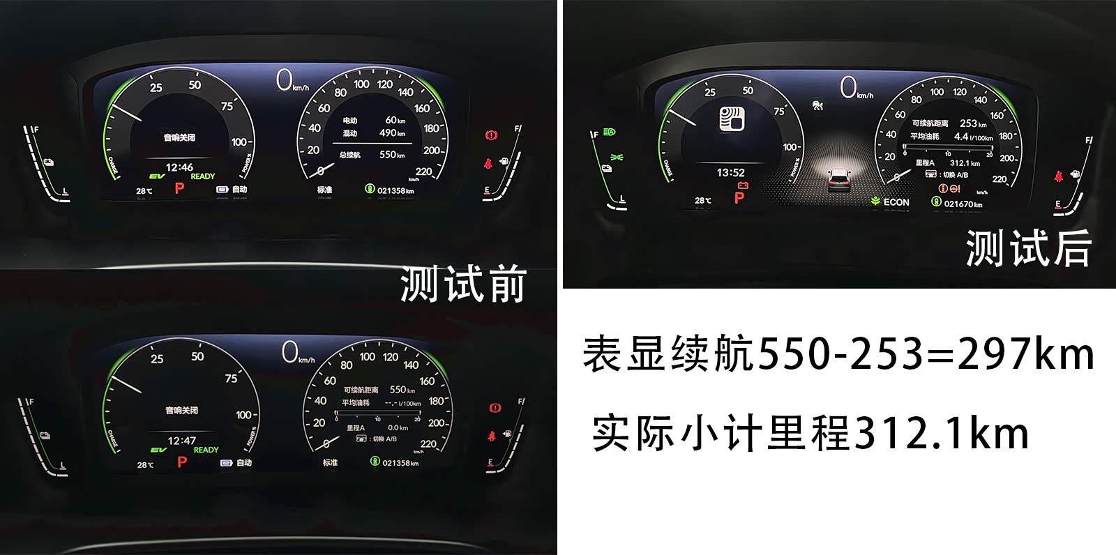这台车的续航表现我们也进行了实际体验,提车时表显续航550km,其中混动490km,纯电续航60km。此刻我们将小计里程清零,行驶路程包括城市灯控路口、拥堵的环路、部分高速。经过4天左右的时间,我们跑了312.1km,表现续航只掉了297km。反而还越开越多了!也就是说皓影e:PHEV的续航不仅扎实,只要你的驾驶风格柔和,续航还会有惊喜。