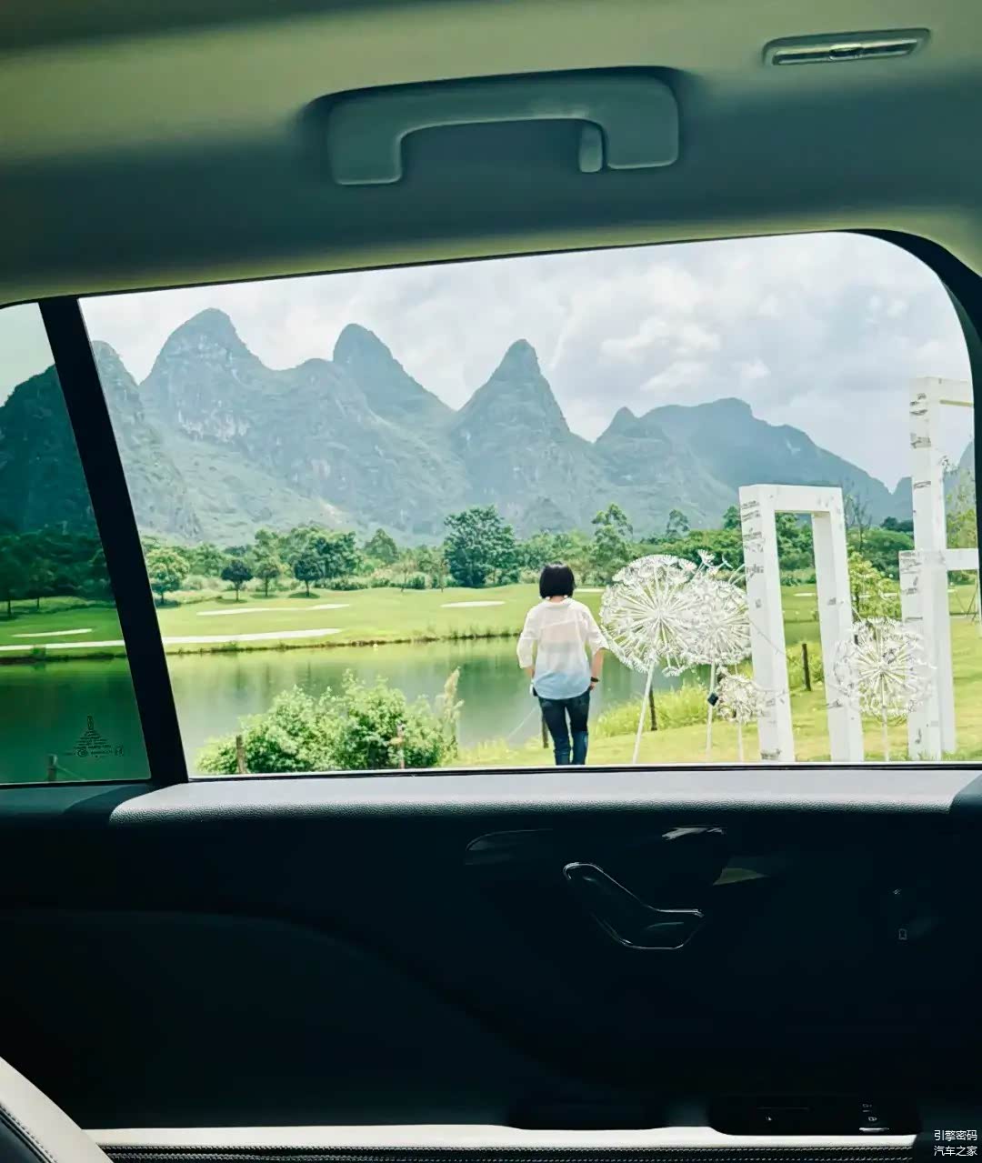 头灯、尾灯组、迎宾光毯与自动下降的车身形成联动,这种恭迎上宾的姿态,礼貌谦和又落落大方。静处时的它,就像这如画的山与水,悠远宁静。山不向我走来,我便向群山走去。群山绿,大狮湾顶闲云醉。向山走去,一走便是182.3公里。从早高峰的城市路,走到依山而建的高速路;从狭窄人杂的乡村路,走到蜿蜒崎岖的山路;从车寡人稀的铺装路,走到悬崖峭壁的非铺装路。我们以糖舍为起点和终点,完成了一条不走回头路的环线。飞行家载着我们换个角度去看桂林山水。我喜欢的那一处叫“大狮湾云顶”。