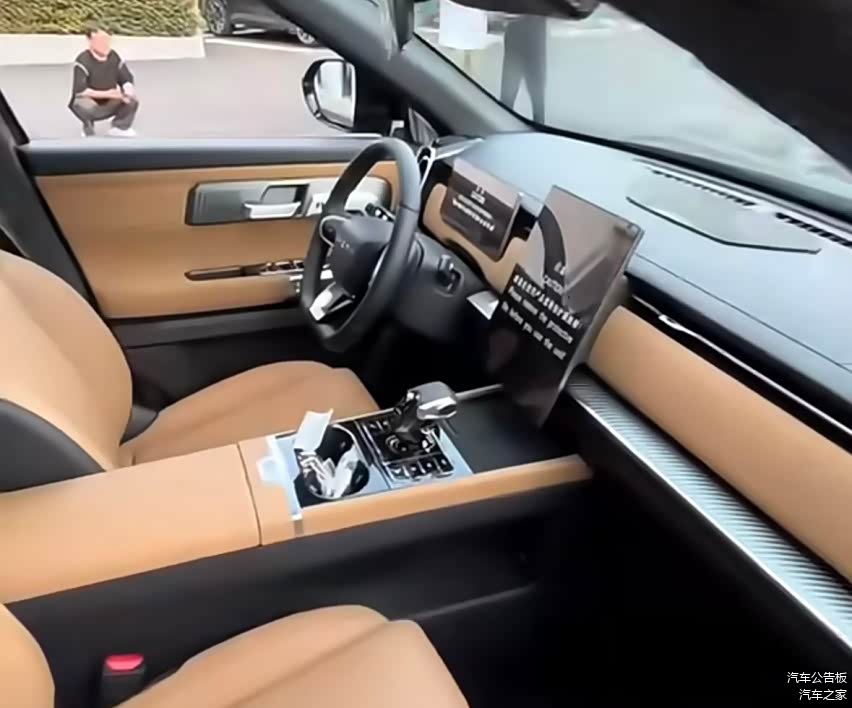 相比于外观,新车内饰的原创度就高多了,或者说基本看不出路虎的影子,而这其实就是探索06的设计,起码笔者觉得非常好看。具体来看,它由悬浮式中控屏和液晶仪表组成,再加上中控台上几乎没有物理按键,所以给人的感觉非常清爽,这也是目前比较流行的设计元素。另外,贯穿式出风口+双色的设计+下方镀铬装饰,使得中控台层次感也很出众。中央操控台附近,新车采用的是电子挡把,前方则是放置手机的地方,估计高配会是无线充电,而挡把后方则是两个杯架,同时由于采用了电子挡把的设计,下方还有非常大的储物空间。