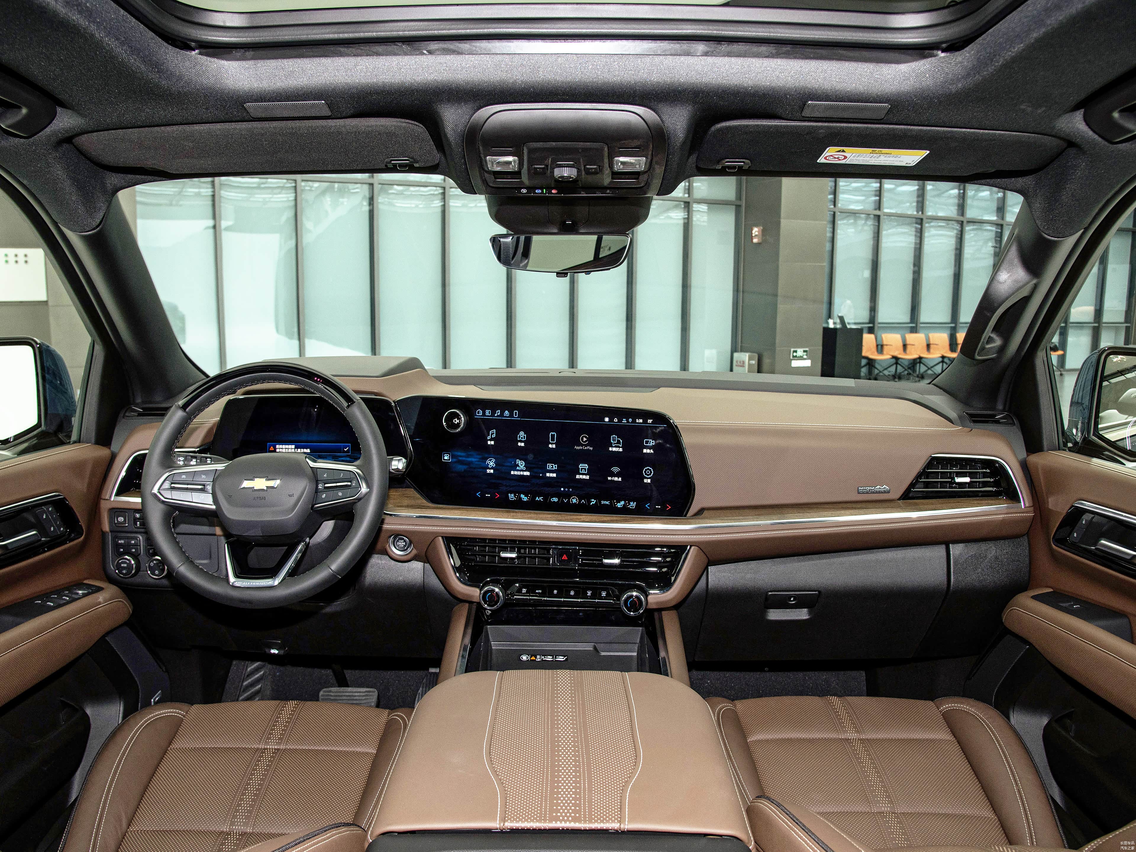 内饰方面,2025款TAHOE太浩换装了最新雪佛兰家族式内饰风格,并提供多种配色选择。中控台配备有全新悬浮式11英寸全液晶仪表盘和17.7英寸中央触控显示屏,支持多项智能功能。车内还提供丰富的标配功能,如三区自动空调、Bose高性能音响系统等。