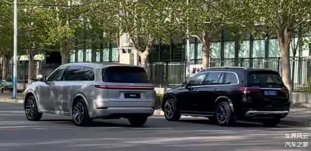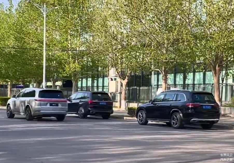我们从照片中能得知,新车进行路试的时候从理想官方地点出发,当开出路面的时候正好驶过停在路边的宝马X7和奔驰GLS,这不免让人猜测是不是故意为做宣传而放置,非常巧合并且没有其他的车辆。相对比之下,两台豪华SUV是全黑色,而银色的理想L9显得格外具有格调并且年轻时尚了不少。