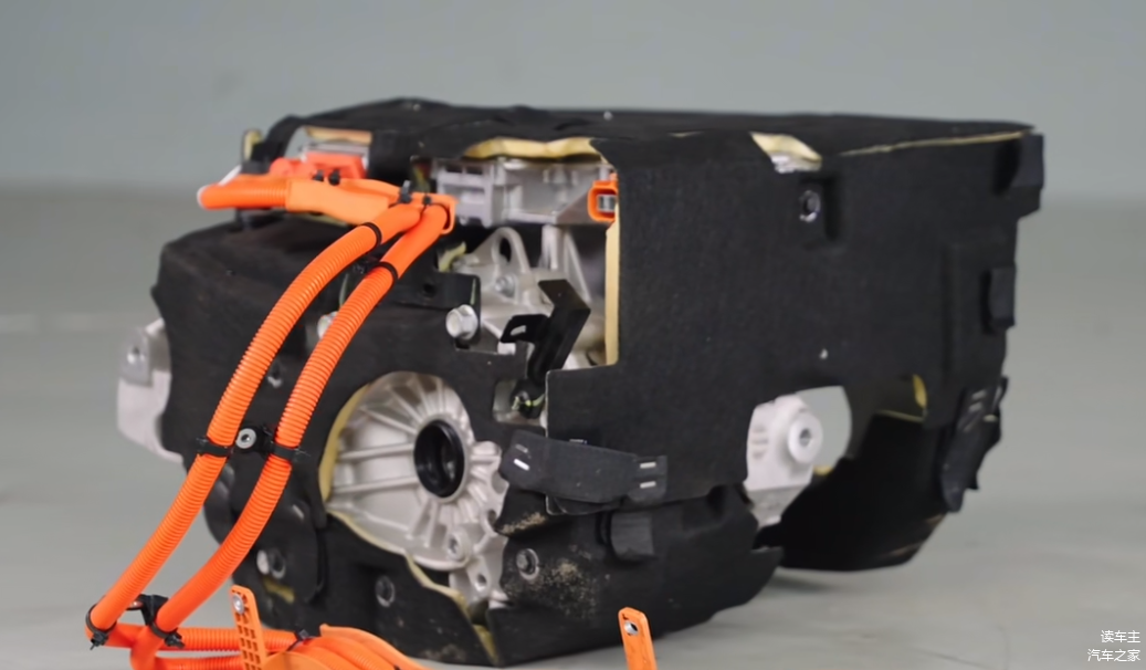 拆下后电机之后,可以发现电机四周还有厚厚的海绵包覆,除了可以起到隔音降噪的效果,也有一定的缓冲作用。此外,整个底盘的管线保护得也很到位。