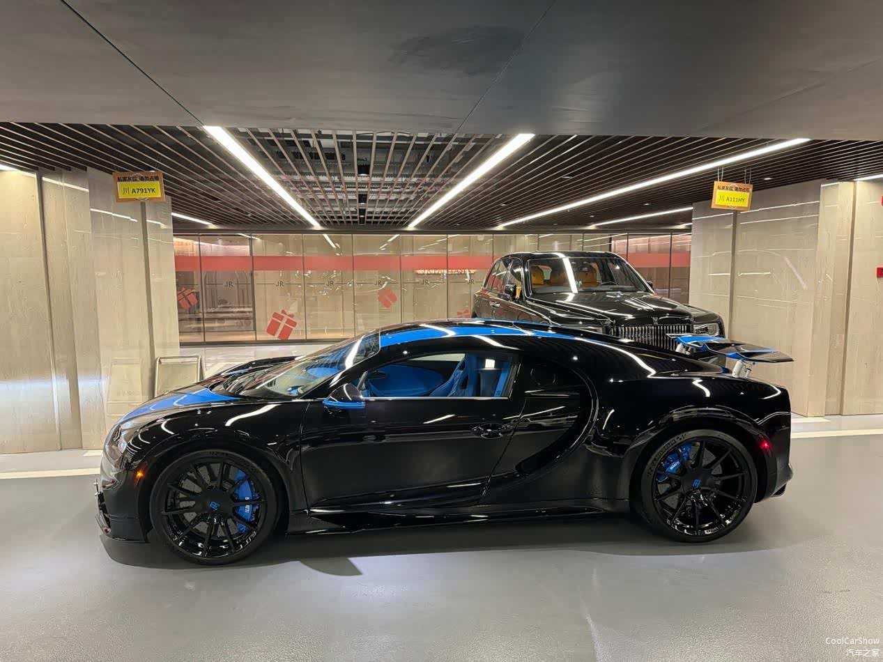 而在去年,老白也收到了属于他的布加迪Chiron,原车为定制化的黑白熊猫配色,现在已经贴为了蓝黑配色。
