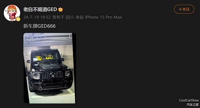 大G也是基础操作,不过老白的是巴博斯G800,而且新车牌也相当有意思。