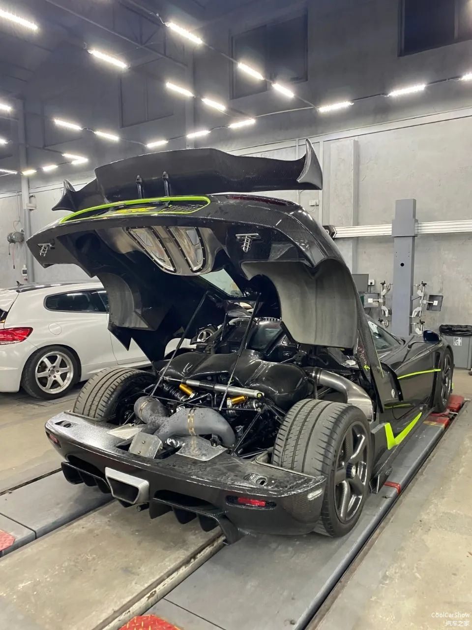 在老白车库里最为名声最高的莫过于这台科尼赛克Agera R+,同样价值千万。在珠海赛车场的一次赛道嘉年华中被某位大V“踩爆”了,成为圈中热话。万幸只是不是很大问题,最后老白也没有过多追究。而如今这台车已经易主。