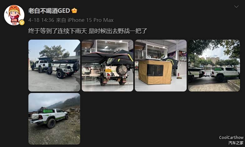 虽然老白拥有数百万粉丝,但作为一位热爱生活的80后,闲余时间还会去野外露营,那他车库里的道奇霸王龙就是撒野的最佳选择。据说到手得200万,但依旧是15年报废。