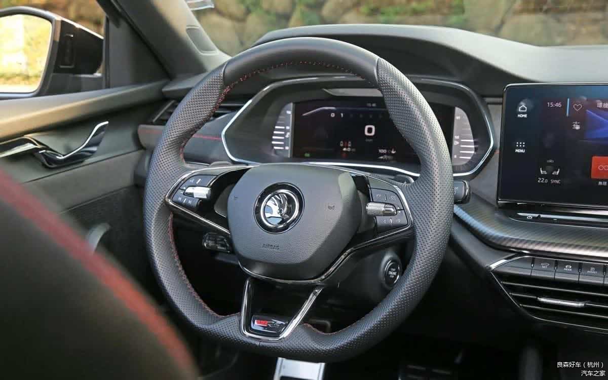 跑车式平把真皮方向盘基本造型与一般车型相同,但vRS徽饰与红色缝线则是RS专属。