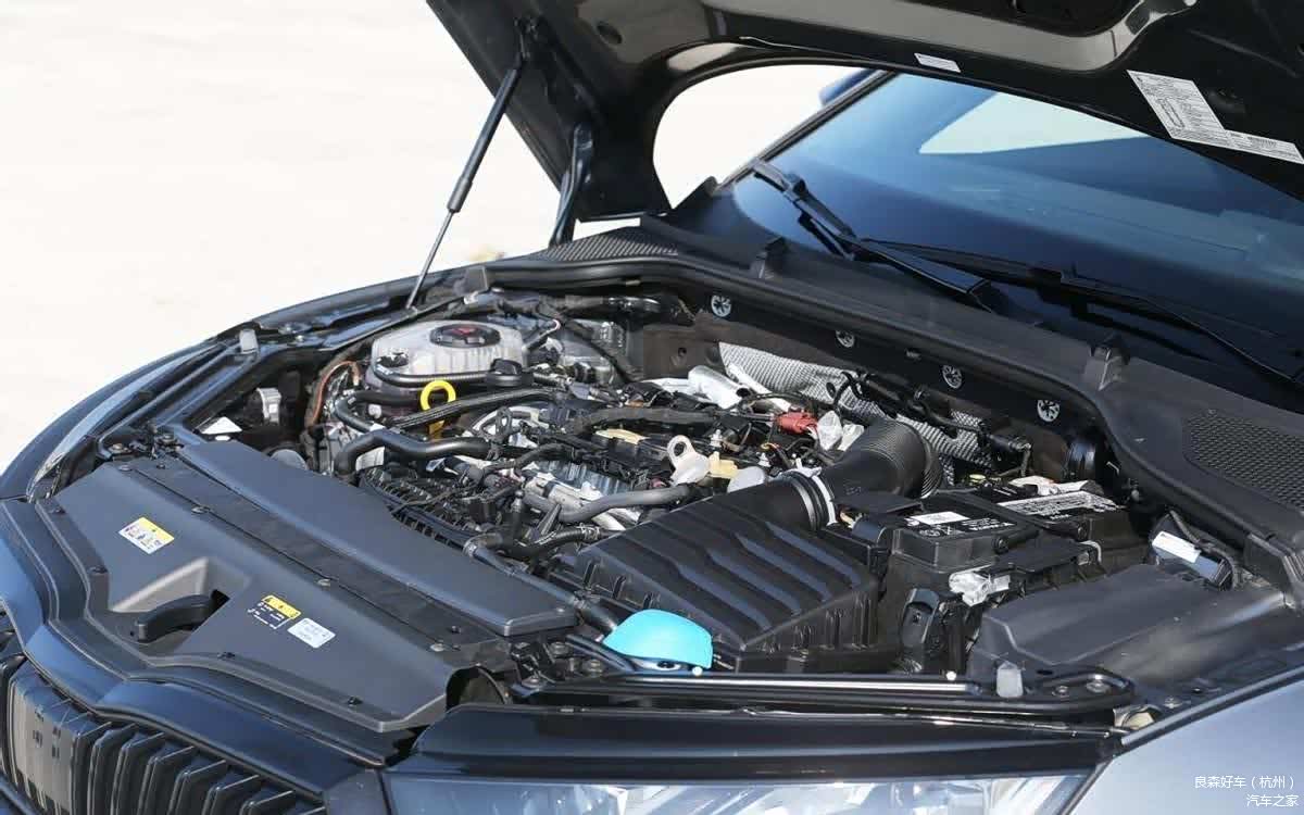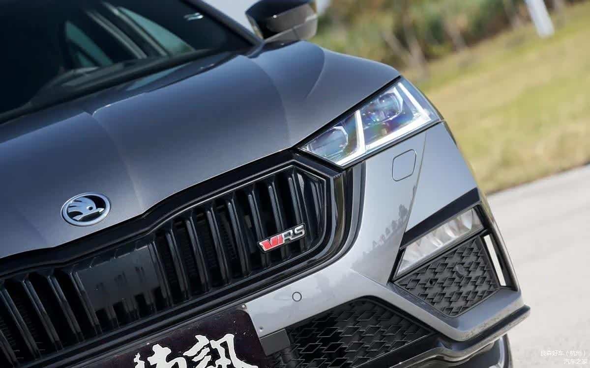 明锐RS换装黑化风格的专属外观套件,水箱罩右侧亦追加vRS铭牌。