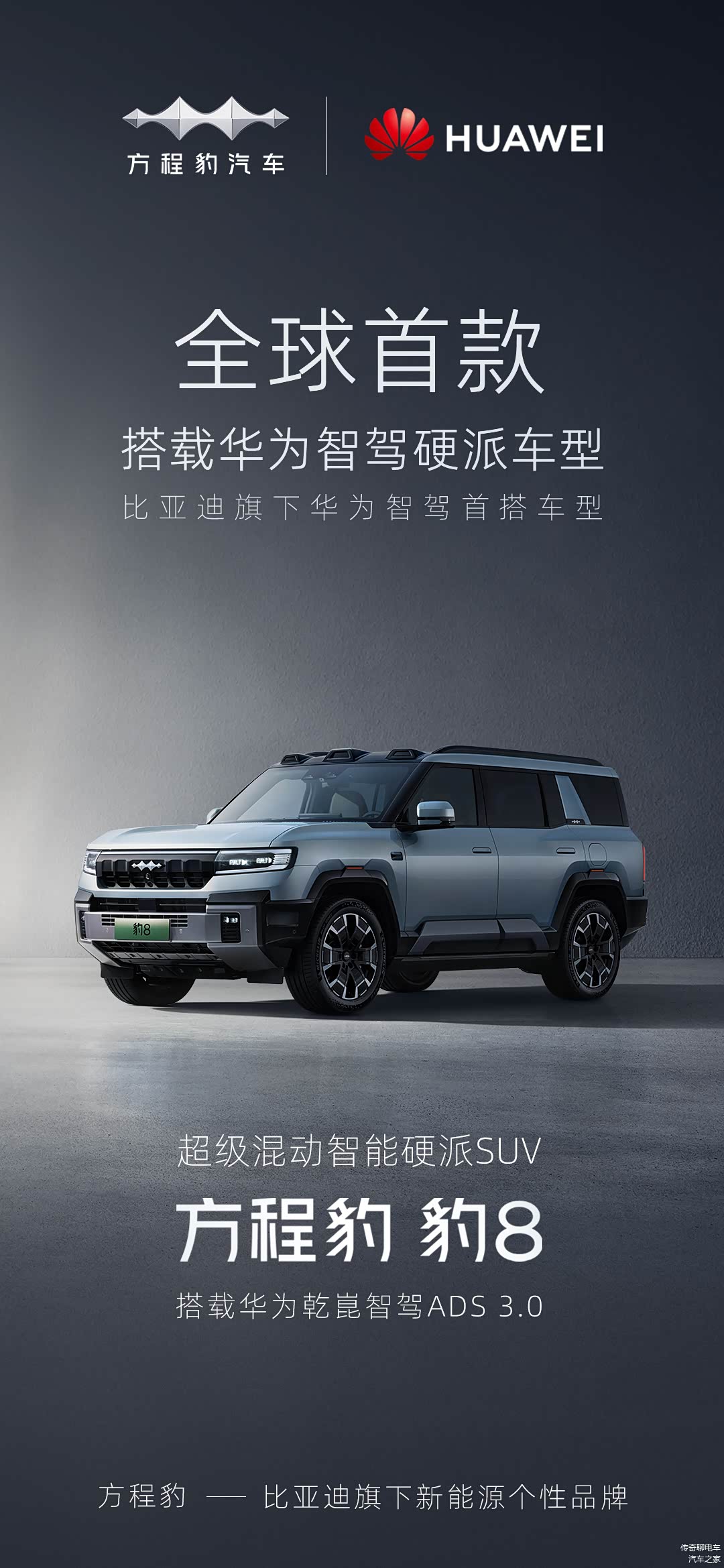 以前总有人发出疑问,既然比亚迪的三电这么厉害,华为的智驾这么牛,为啥他俩不合作呢?而且总部都在甚至,一起搞出来的汽车一定很牛,现在终于实现了。比亚迪方程豹与华为乾崑智驾正式官宣合作了,两大科技巨头强强联合,共同打造方程豹专属智驾方案,推动智驾技术革新,而且首搭的车型就是方程豹豹8,直接上HUAWEI ADS 3.0。