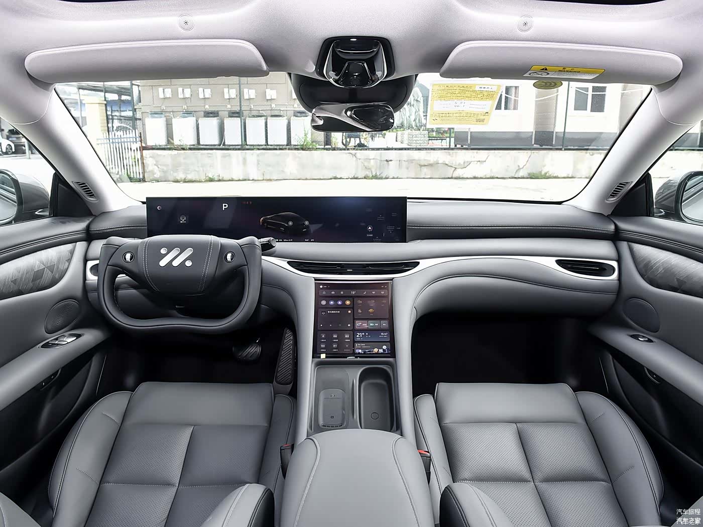 智己L6的内饰整体看上去极其科幻。超宽的双联屏从主驾一直拉倒副驾,能够显示非常丰富的车辆信息并提供极致的影音体验。智己精心设计的半幅式方向盘除了提供一个更独特的驾驶体验外,还避免了对屏幕的遮挡。智己L6同样采用了电子怀挡的设计,使其在中央扶手去能够安上一块用来控制空调等系统的大屏幕,可谓是科技感拉满。