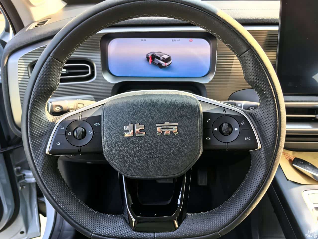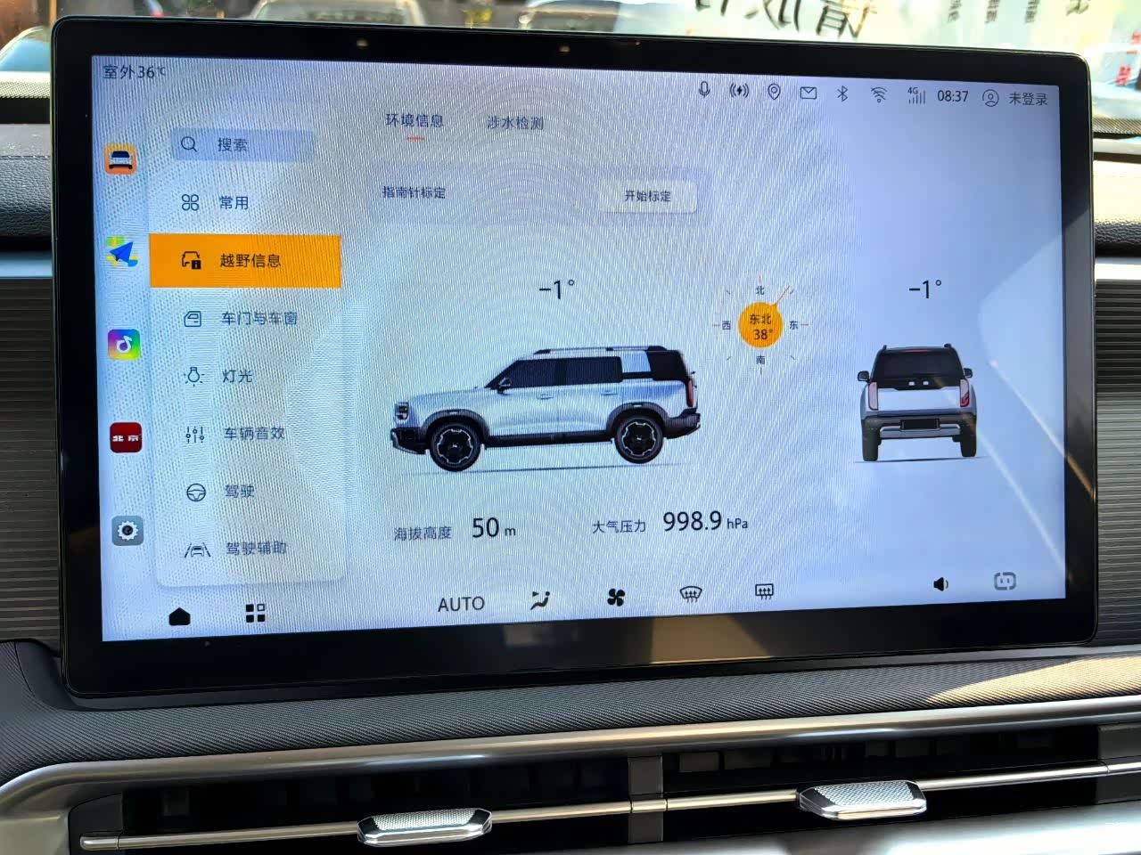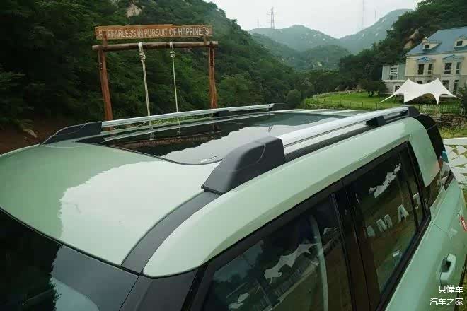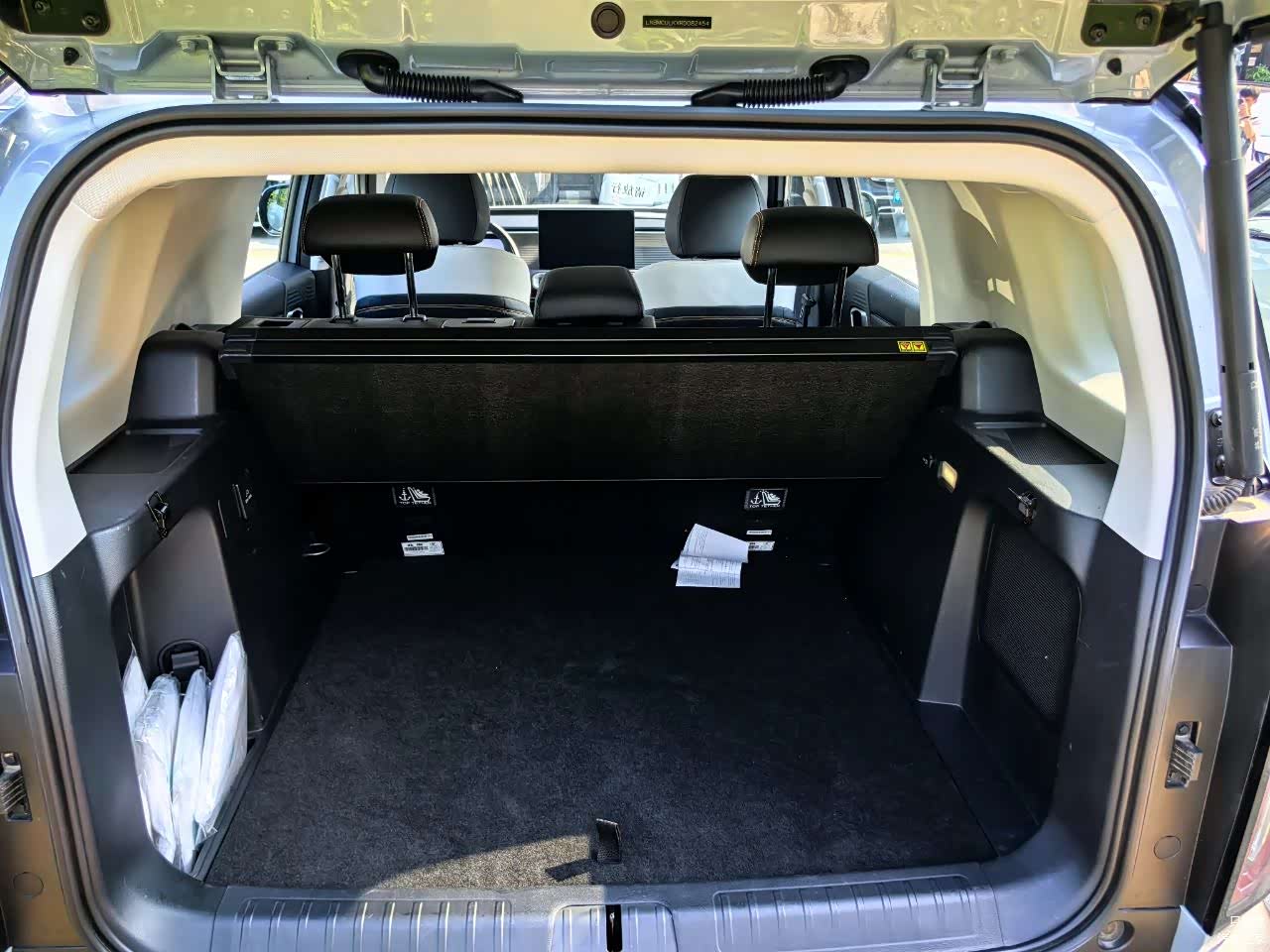 我们开的这台北京BJ30魔核电驱进阶版是顶配车型,车顶上提供了可捆绑物品的行李架,侧踏板也有装备,方便乘客上下。打开后电动尾门,行李舱空间规矩平整,方便规划行李摆放位置。行李舱内部还提供了一个电源接口,方便接驳一下小型的电器设备。